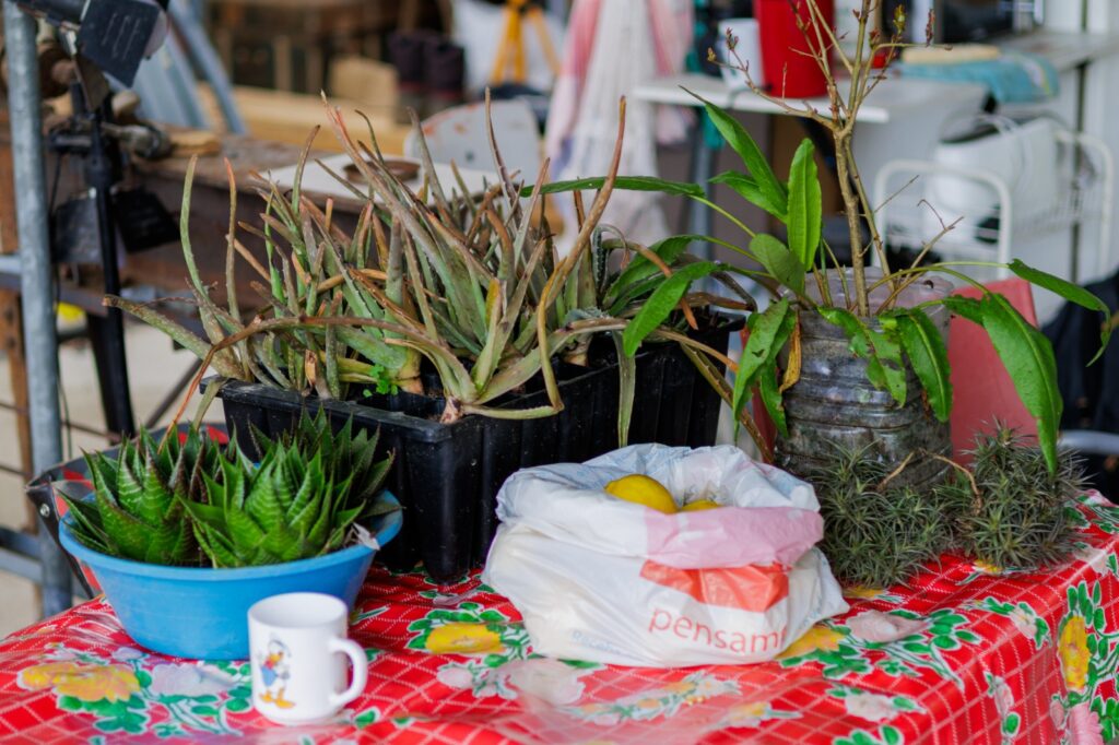 Começou chuvoso e nublado e sem gente mas pouco a pouco começavam a aparecer com sorrisos, bolos, sementes e plantinhas e até o 🌞 apareceu!
